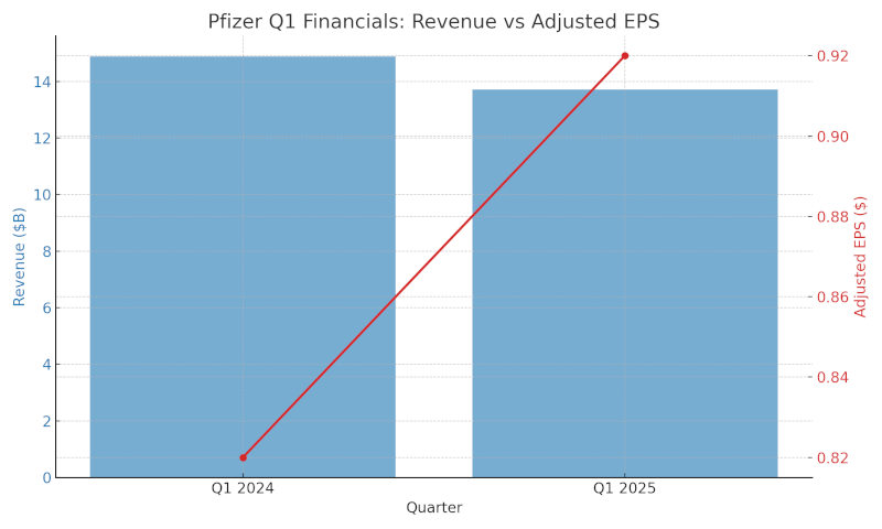 My dears, Pfizer’s first quarter reads like the memoir of an ageing baron who, though past his gallant duels, still commands a formidable estate. Revenues fell 8%—a retreat largely traced to Paxlovid’s diminished returns now that the pandemic has ceased its starring role. But do not mistake contraction for collapse. Beneath the surface, one sees a firm tightening its corset, realigning costs and redistributing its wealth from old battles to future campaigns.